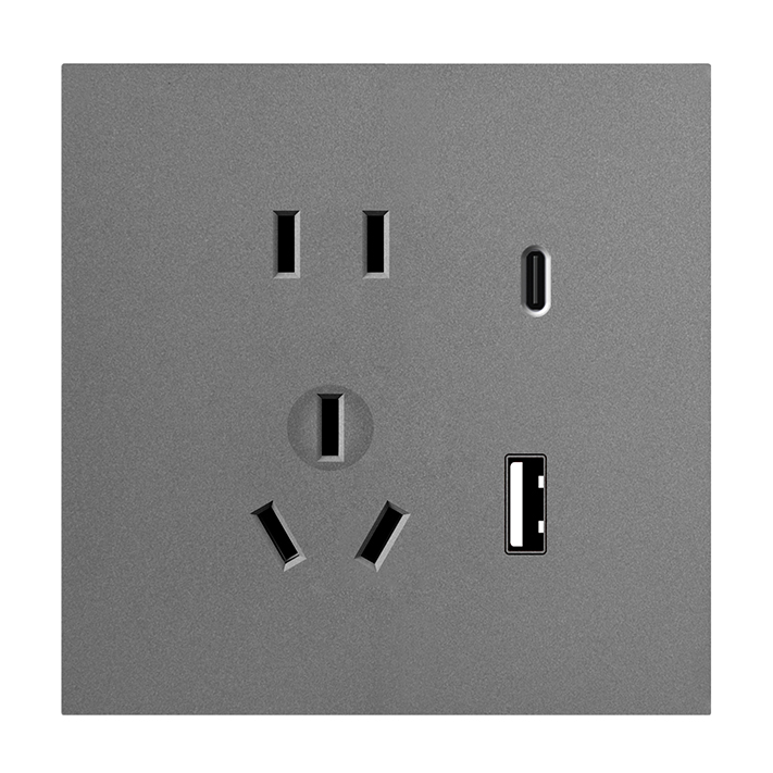 二三插帶雙USB(20W、1A1C)充電插座(金屬灰)