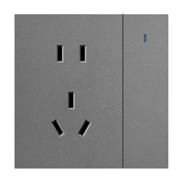 一位雙路大蹺板開關(guān)16A三極插座(金屬灰)