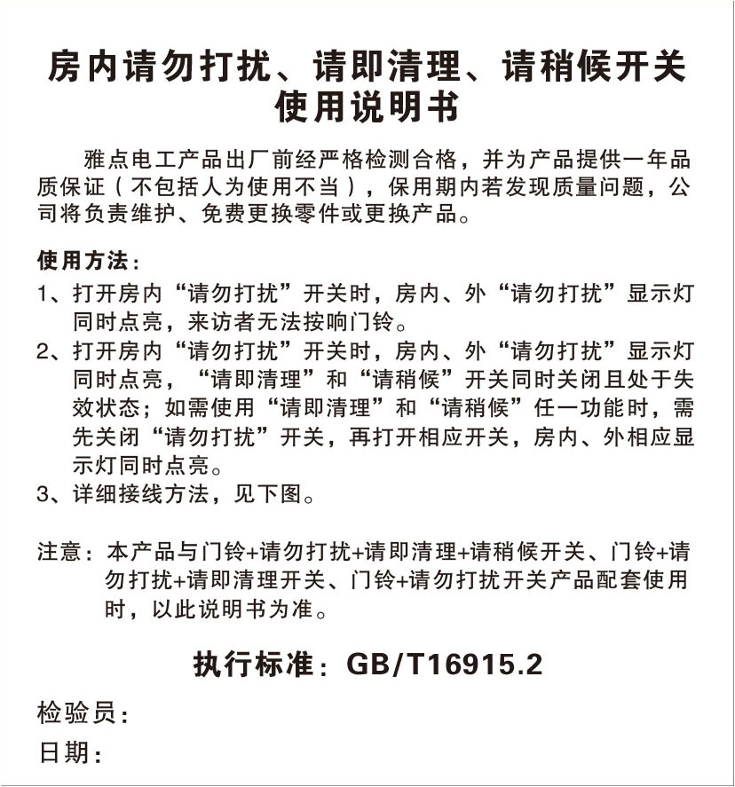 房內(nèi)請勿打擾、請即清理、請稍候開關(guān)