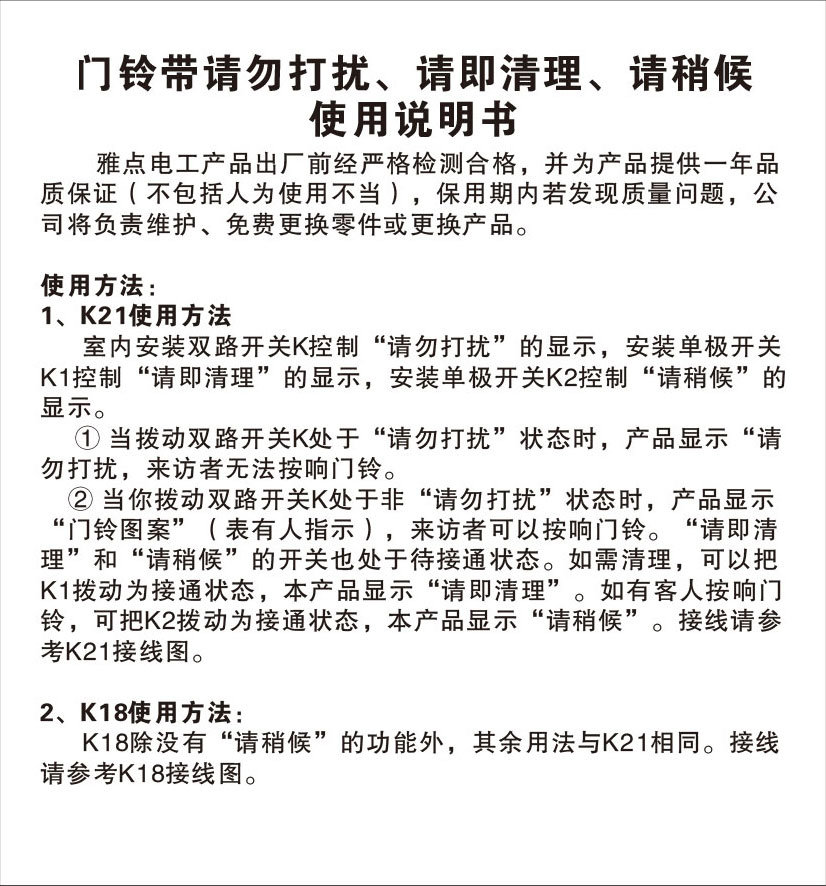 門鈴帶請勿打擾、請即清理、清稍候