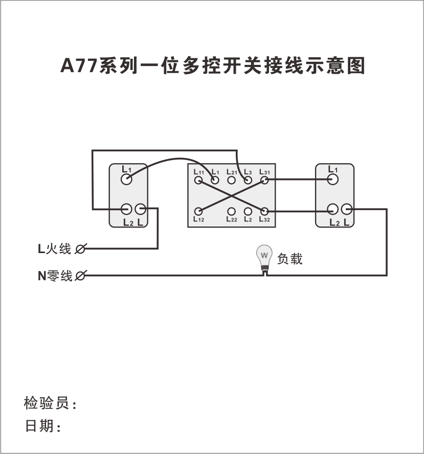 A77系列一位多控開關接線示意圖
