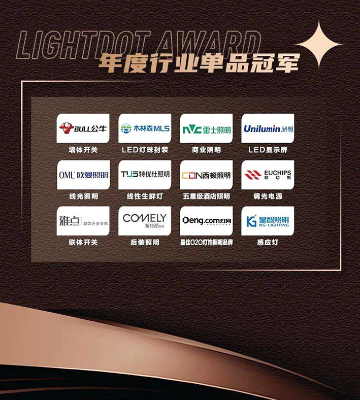 2022年5月23日,“亮點獎2021中國燈飾照明行業(yè)品牌大會”在燈都古鎮(zhèn)隆重舉行!2021年度人物、年度領(lǐng)袖品牌、各品類十大品牌、單品冠軍的名單在大會上揭曉!