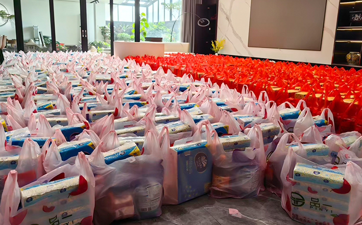 2月2日,中山市家的電器有限公司為全體員工精心準備了豐厚的春節福利。一袋袋優質大米、一桶桶食用油、一瓶瓶洗衣液以及各式各樣的零食大禮包整齊擺放,承載著公司對員工們一年辛勤付出的誠摯感謝。